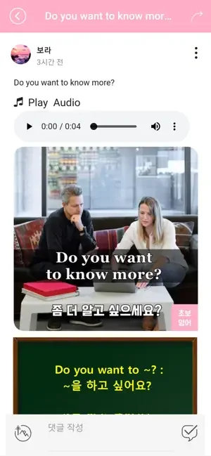 아침과 저녁으로 내용을 업데이트하므로 하루에 부담없는 두개의 초보영어회화표현을 익히실 수 있으며 꾸준히 학습하시면 원하시는 수준까지 도달하실수 있습니다.