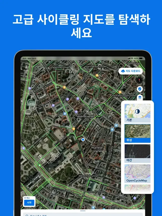 트래킹, 내비게이션 및 경로 플래너를 갖춘 사이클링 앱입니다. 도시와 시골에서 안전하게 자전거를 타는 데 최적화되어 있습니다. 가까운 최고의 자전거 경로를 찾아보세요.