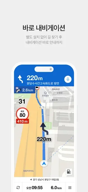 모든 경로에 대한 음성 내비게이션 안내를 받을 수 있습니다.