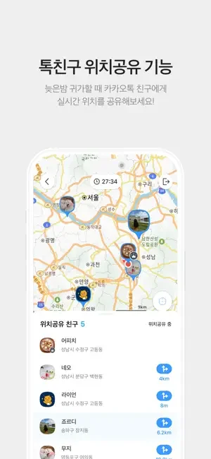 - 늦은밤 귀가할 땐 톡친구 위치공유 기능