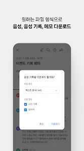 녹음한 음원, 음성기록, 메모를 파일로 다운로드할 수 있어요.