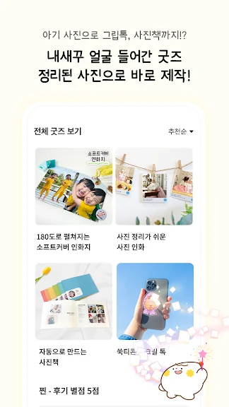 아기돌 굿즈 제작 기능도 있어, 사진책, 그립톡 등 다양한 상품을 손쉽게 만들 수 있습니다. 특히 특별한 날에는 자동으로 특별한 선물을 준비해 드립니다.