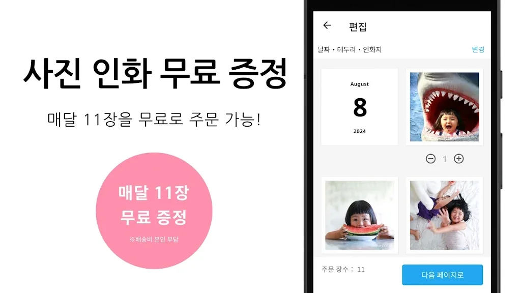 또한 매달 11장의 사진을 무료로 인화할 수 있는 기회와 다양한 포토북 제작 옵션을 제공하여, 부모님이 바쁜 일상 속에서도 추억을 쉽게 정리하고 남길 수 있도록 지원합니다.