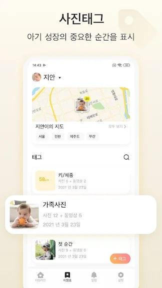 아기의 마일스톤 기능을 활용하면 성장 및 발달 과정을 한눈에 확인할 수 있으며, 지도에서 아기의 여정을 시각적으로 추적할 수 있습니다. 사랑하는 가족과 친구들을 초대하여 아기의 모든 사진과 동영상을 공유하면, 개별적으로 전송할 필요 없이 간편하게 소중한 순간들을 나눌 수 있습니다.