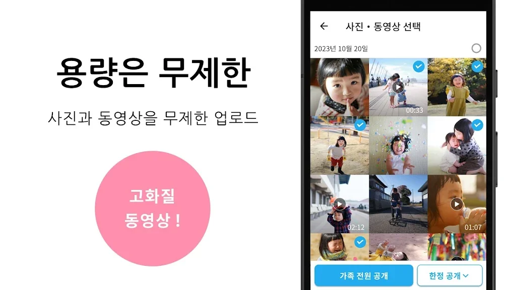광고 없이 무제한의 긴 동영상을 원본 그대로 업로드할 수 있으며, 사진의 공개 범위를 관리하여 가족만 볼 수 있도록 설정할 수 있습니다. 가족 간의 상호작용을 위한 '좋아요' 및 댓글 기능으로, 아기의 사진이나 동영상에서 소중한 의견을 나누며 더욱 가까워질 수 있습니다.