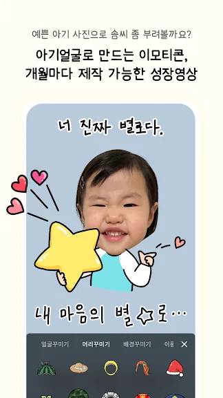 또한, 스티커와 필터 등 다양한 편집 기능을 통해 아기의 사진을 더 매력적으로 꾸밀 수 있습니다. 베베메모와 함께 아기의 모든 특별한 순간을 안전하고 쉽게 기록하세요!