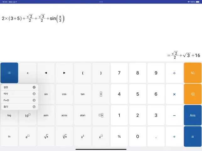 2) 아이폰 U 공학용 계산기 어플 스크린샷